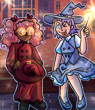 Zuzu, a perpetually anxious and insecure FSU student, and Violet, her energetic and enthusiastic girlfriend, are witches whose magic gets stronger as they bond. In a world where anti-witch prejudice runs rampant, they find community in the Witch Student Association (which has three people in it), and find joy in taking care of their pet creature, Soup. How fun!